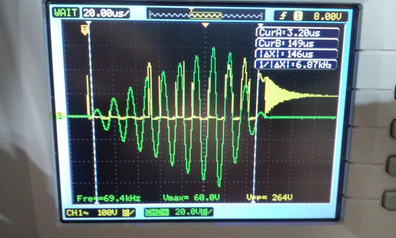 Bench testing scope shot of a BPS (bangs-per-second) pulse on the v5 driver.